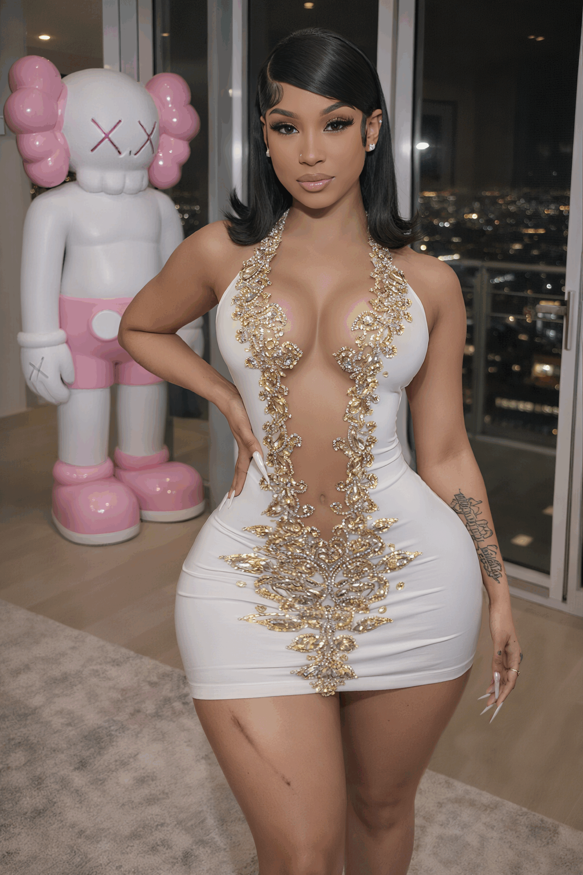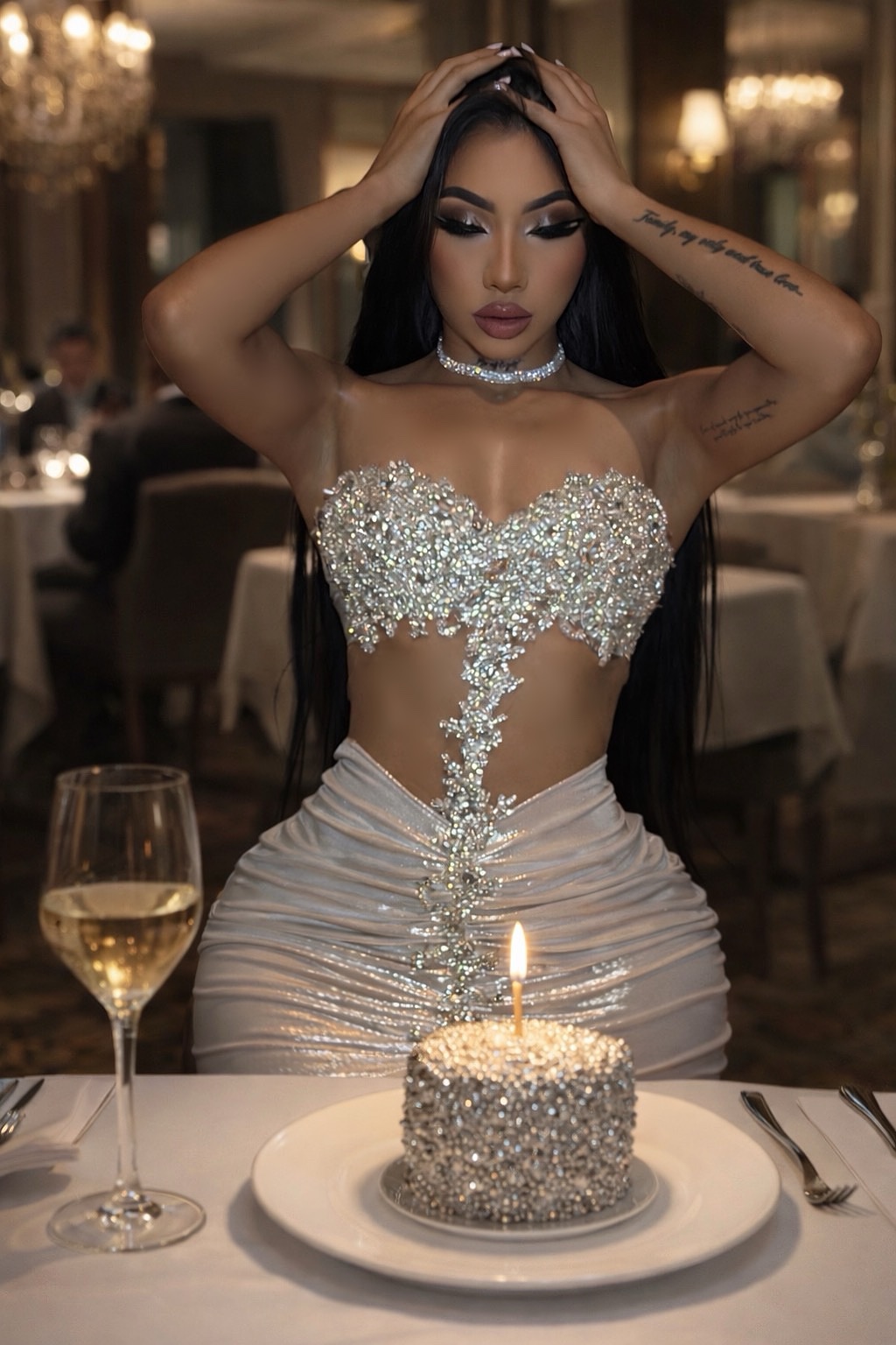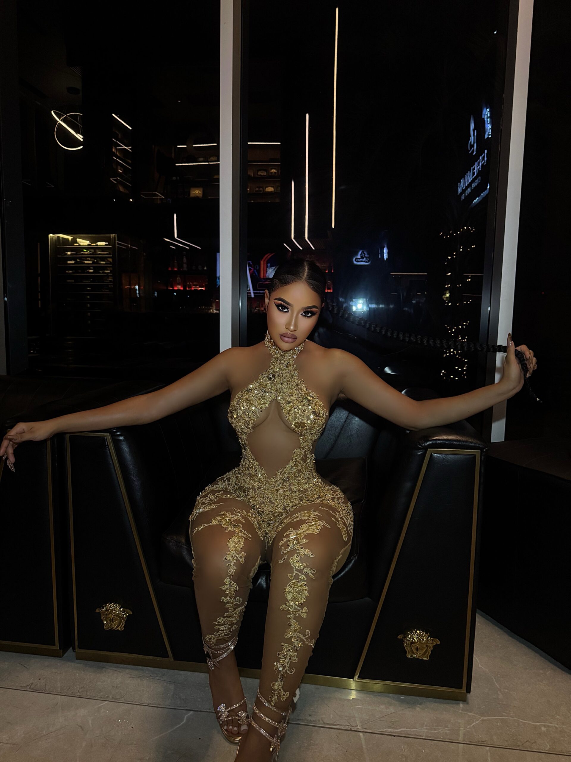 This Jumsuit is completely handmade with original Swarovski crystals, placed one by one on premium stretch fabric that fits perfectly to the body
